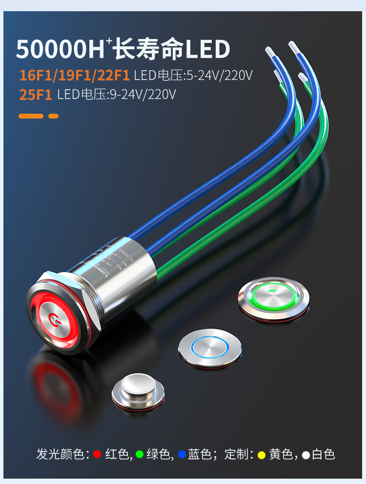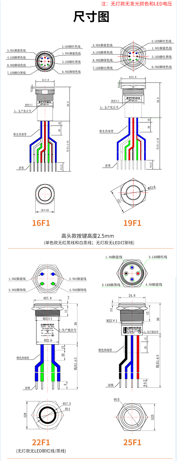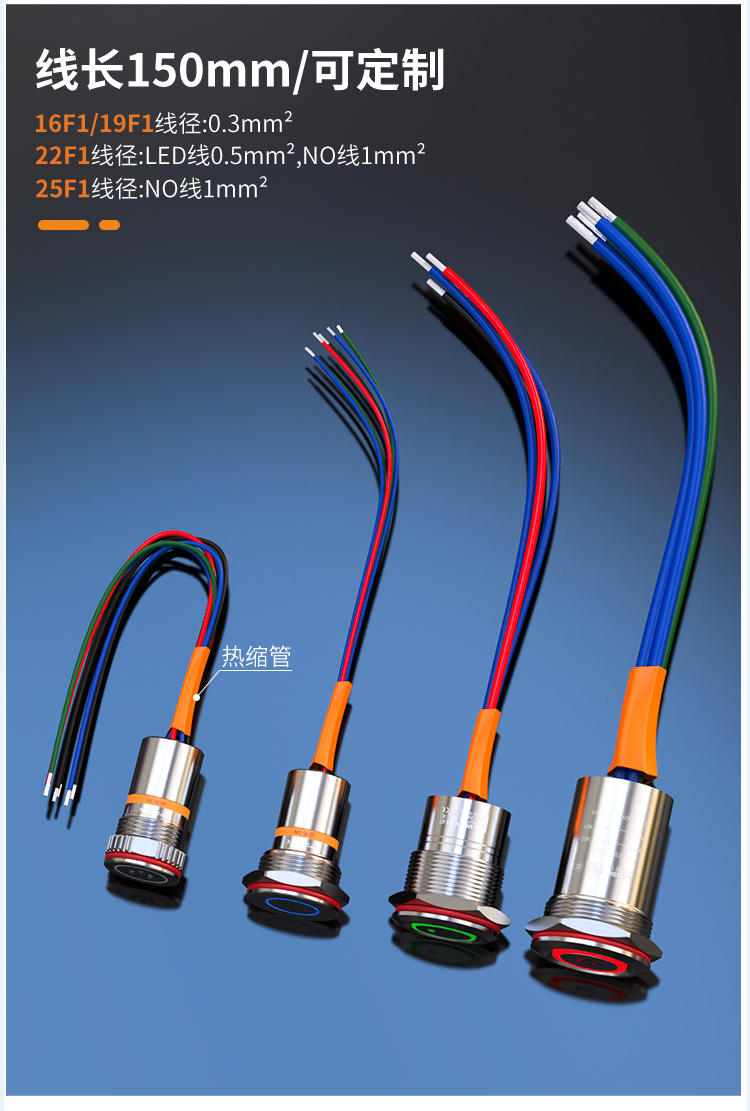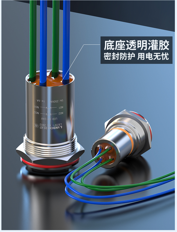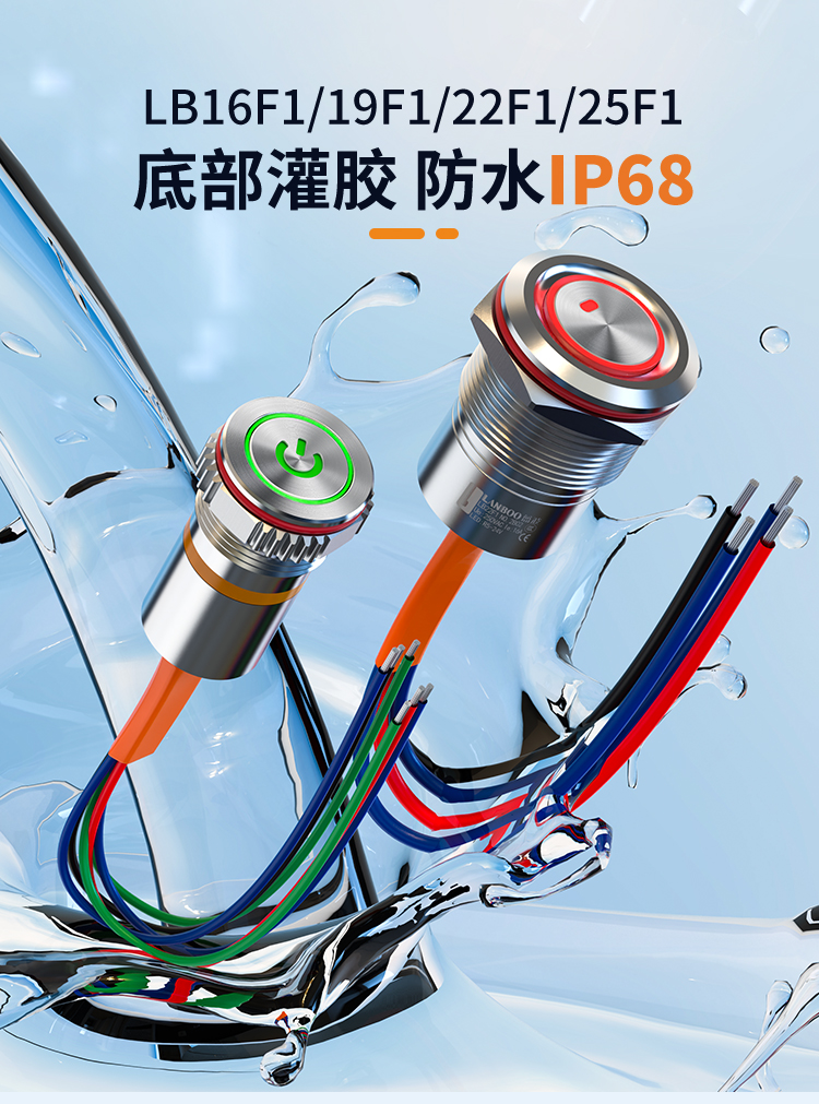 • 16/19/22/25带线款金属按钮高防水IP68底部灌胶