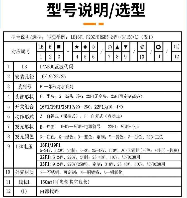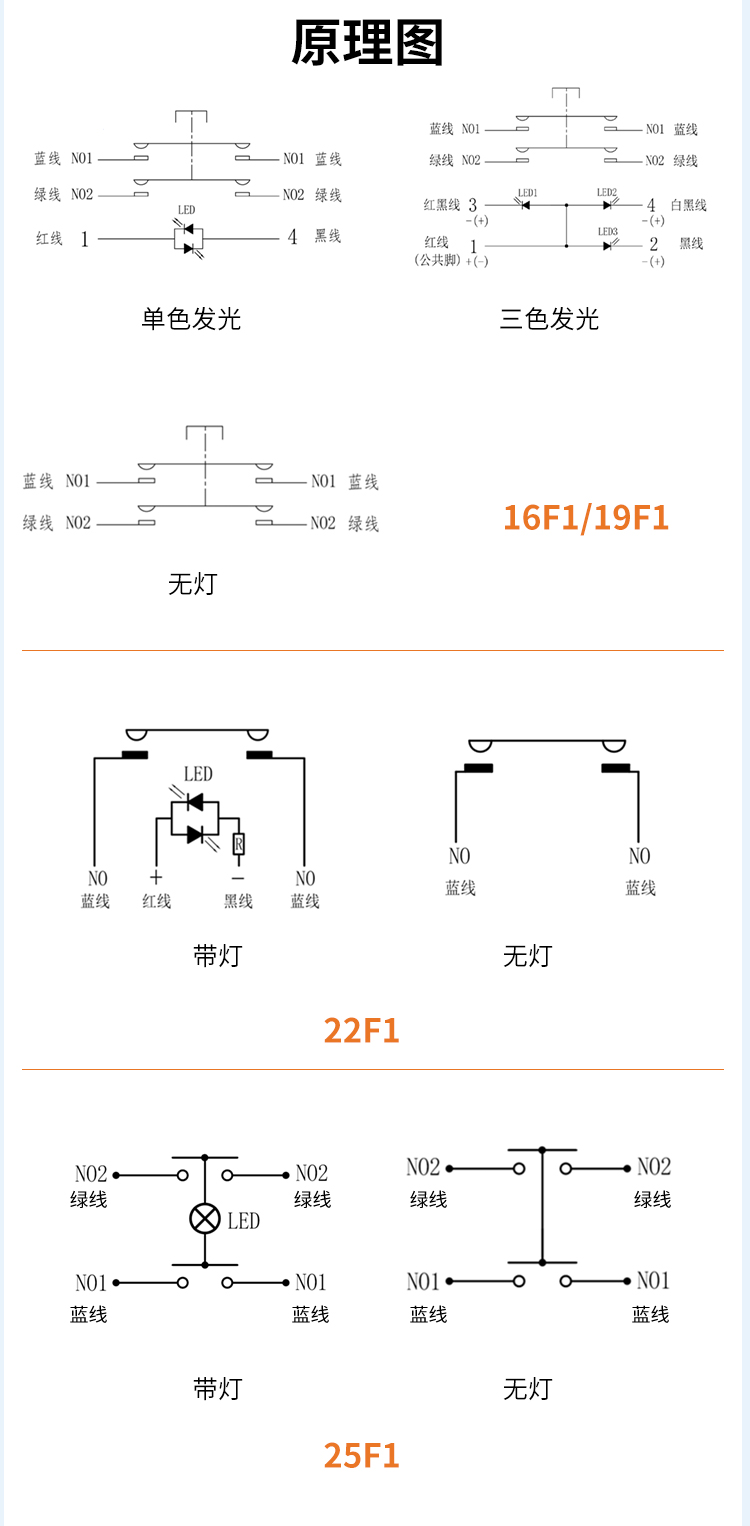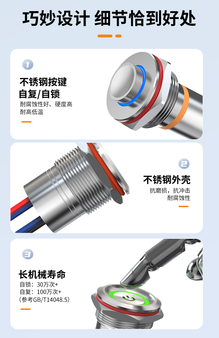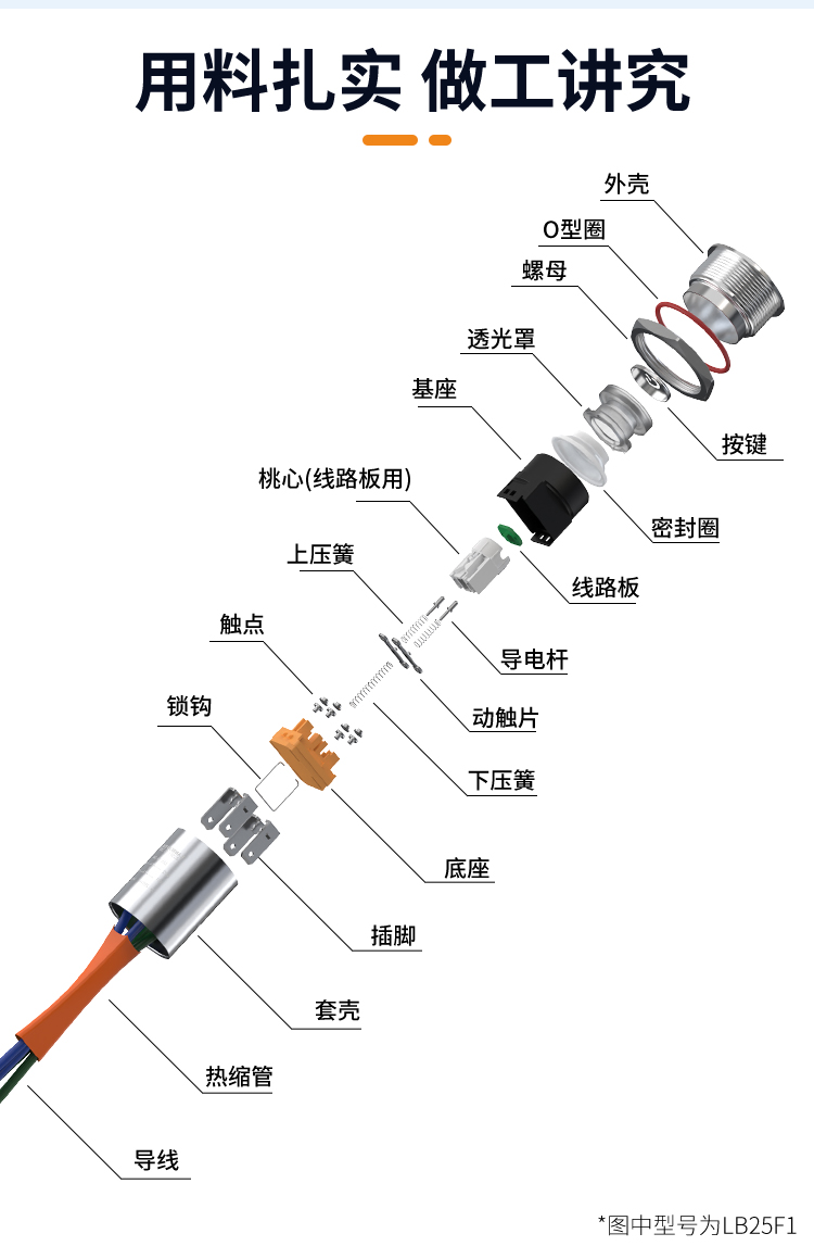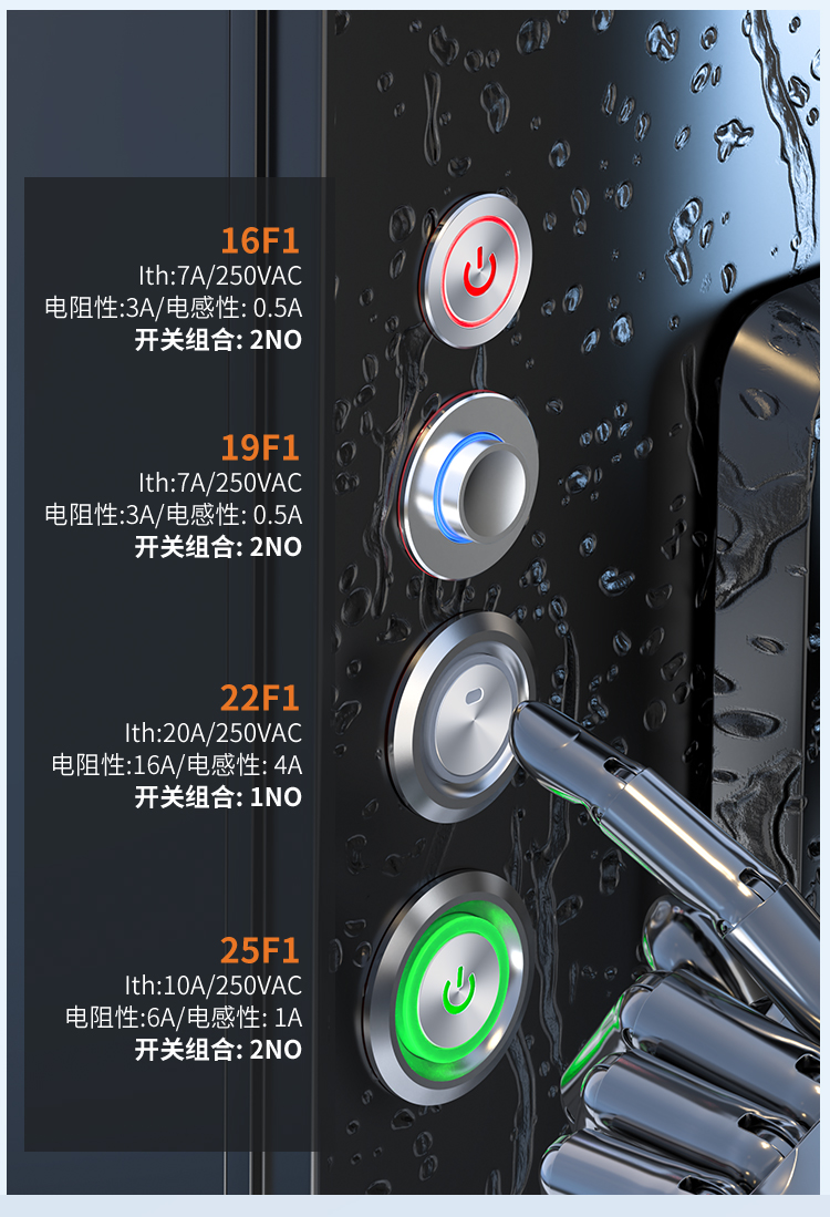 • 16/19/22/25带线款金属按钮高防水IP68底部灌胶